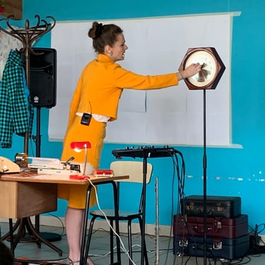 Miss tweed chante sa journée au bureau. Les objets deviennent instruments, les voix s'empilent ,la musique s'électrise.